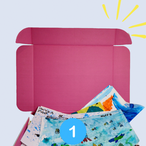 Purchase your book and we'll send you a KeepArt Kit to fill with your kid's artwork. There's a pre-paid shipping label included in the the kit to send your artwork back to us.